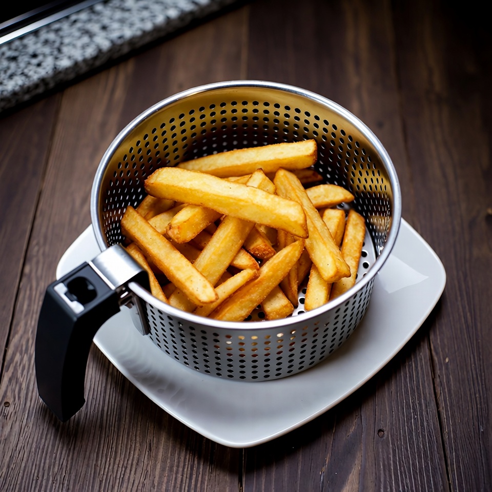 Podanie: Podawaj frytki natychmiast po usmażeniu, aby zachowały swoją chrupkość. Możesz dodać dodatkową sól lub świeże zioła na wierzch.